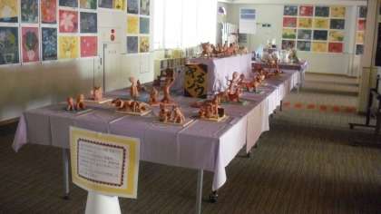 6年生「お祝いの花」「カチッとトロッと生まれたカタチ」「守るゾウ」「トランプはんが」
