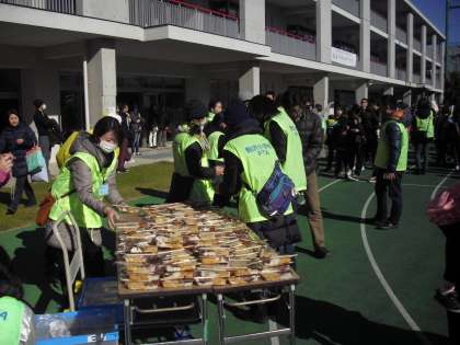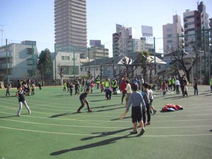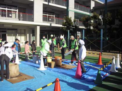 1月18日、上馬地区町会連合会、駒沢中学校、PTAの皆さんのご協力で、「新春こどももちつき大会」が行われました。お餅つきを体験し、自分でついたつきたてのお餅を校庭でおいしく食べました。