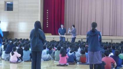 今日は、主事さんたちが、何か月もかかって学校の周りの柵を作ってくださったお話、目標に向かってやりぬいたお話でした。これでお話をおわります。