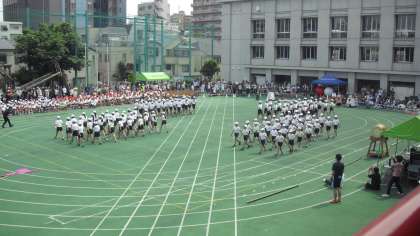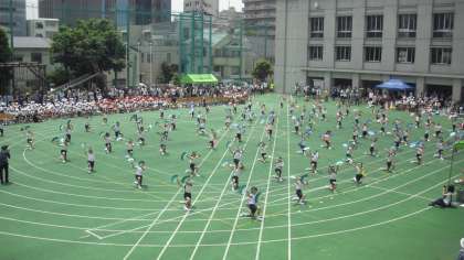 5・6年生「All together 〜心を一つに〜」は、集団行動、組体操、棒体操、器械体操を披露しました。