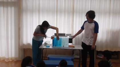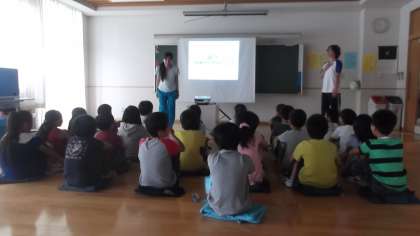 映像と実験で、水のことについて勉強しました。子どもたちは楽しんで学習に参加していました。水道キャラバンのみなさんありがとうございました。