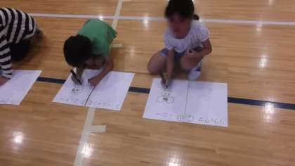 見本を頼りにみんなで協力し、一筆書きで絵を完成させました。