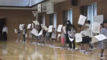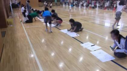 今日児童集会で、「似顔絵ゲーム」を行いました。
