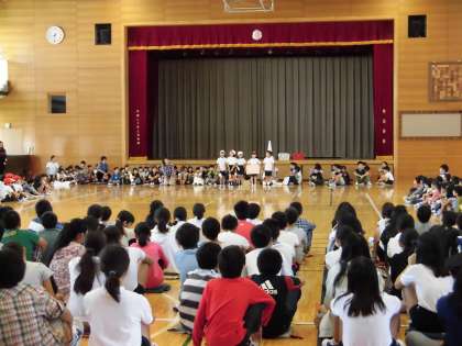 10月10日(土)に行われる「子どもまつり」のPR集会を行いました。各クラスで話し合って決まった出し物にたくさんのお客さんがきてもらえるよう、工夫をこらして発表をしました。当日はたくさんの方に楽しんでいただけたらと思います。