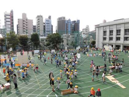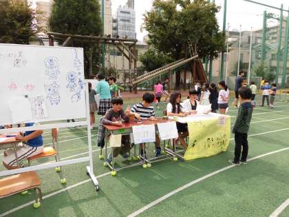 本校校庭で子どもまつりをおこないました。クラスで考えたお店はどこも行列ができるほど人気でした。お客さんになって回っている子どもたちも他のクラスのお店に行きゲームや出し物を楽しんでいました。