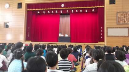 本日、図書委員会がペープサートを使っておすすめの本の紹介をしました。低学年用と高学年用に2つの本の紹介をしました。