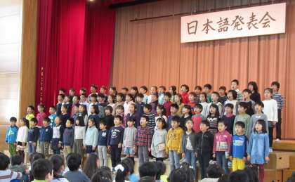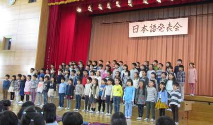 本日、日本語発表会を行いました。各学年とも日本語の「響き」や「リズム」を楽しみながら、心のこもった発表をすることができました。本日ご来校いただいた方々、ありがとうございます。15日、16日も学校公開期間です。お時間がございましたら授業を参観いただけると幸いです。写真は、1年生、2年生、3年生の発表です。