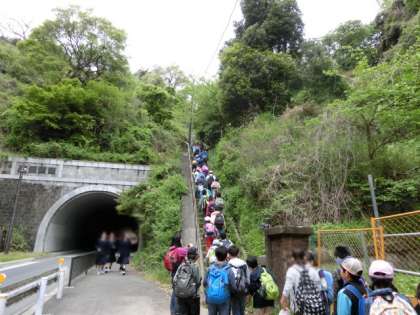 源氏山のハイキングは、なかよし班で一緒に登りました。子どもたちは汗をかきながら楽しそうに登っていました。