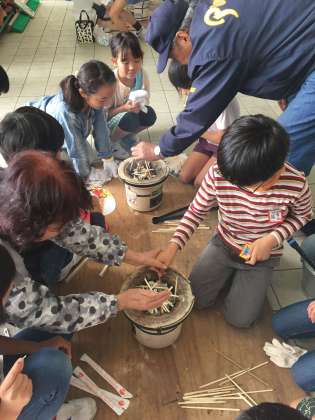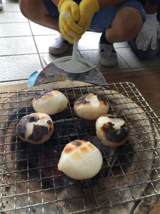 4年生が社会科の昔の道具調べの勉強で、七輪を使ったお餅焼きを体験しました。