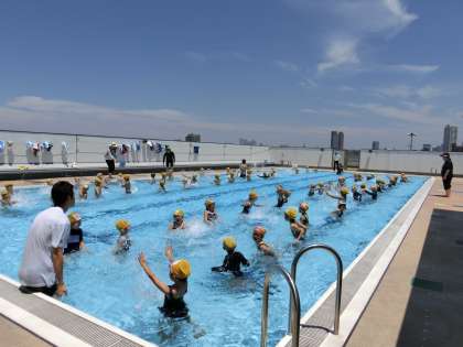 動物になってプールの中を歩いたり、水をかけあったりと楽しい時間を過ごしました。