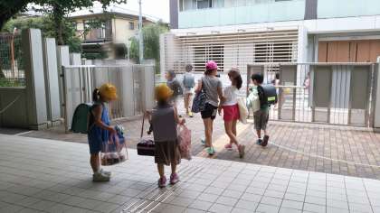 1年生は、プールバックと道具箱を抱えていました。両手に荷物を持って、主事さんに励まされながら帰って行きました。