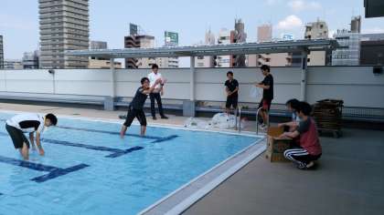 子どもたちが下校した午後、先生たちで夏季水泳教室の準備をしました。