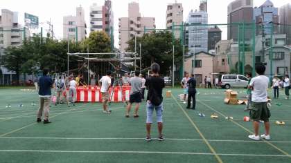 校庭では、今朝8時から盆踊り大会の準備が始まっています。