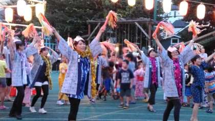 盆踊りの合間に「学校de遊び隊」の皆さんの和風サンバカーニバルがありました。