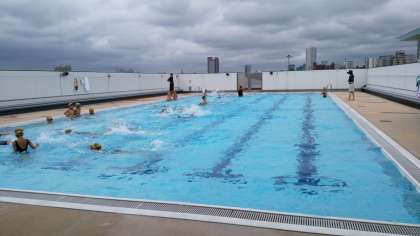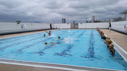 曇り空ですが、子どもたちは、元気に泳いでいます。