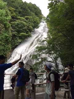 湯ノ湖半を40分ほど歩き、湯滝に到着です。 マイナスイオンがたっぷりです。