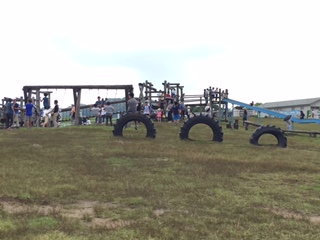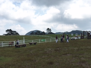 大笹牧場のアスレチックで、昼食までの約30分ほど遊びます。