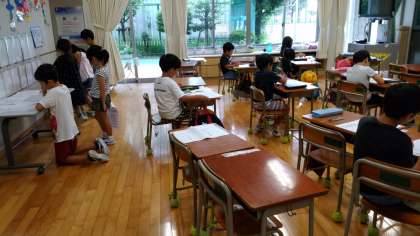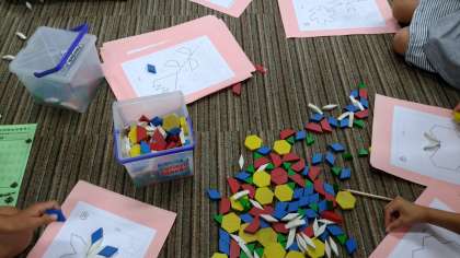算数のプリント学習をし、早く終わった児童はしきつめパズルに挑戦しました。