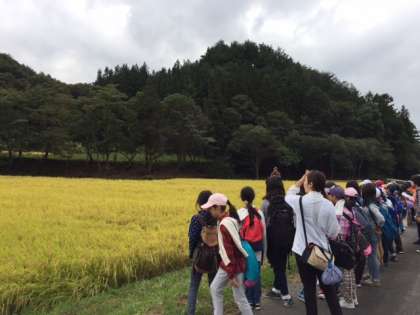 黄金のじゅうたんに、しばし見とれてしまいました。美味しいお米が出来てます。