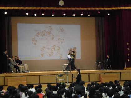地域の様子や校舎、遊び、給食、運動会など、昔の様子を映像をまじえておはなししていただきました。
