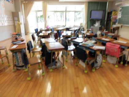 1年生も、机の脚をしっかり持って、身を守っていました。