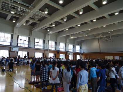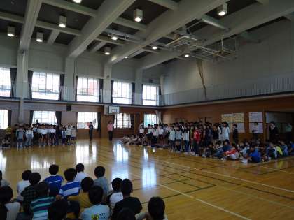 今日の音楽朝会では「歌よありがとう」を合唱しました。この歌は11月12日の音楽会で全校合唱する曲です。4年生以上がソプラノとアルトに分かれて歌い、きれいなハーモニーを作り上げていきます。