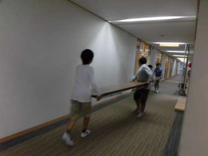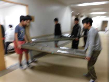 今週末に行われる展覧会に向けて、6年生がたくさんの机を運んでくれました。