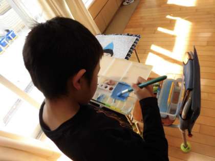 パレットを片手に、色を混ぜている姿は、絵描きさんみたいでした。