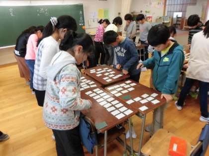 中学年は、教科「日本語」で、百人一首の学習をします。