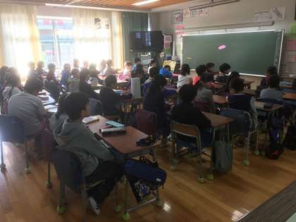 今日は、インフルエンザ対策で、放送朝会にしました。
