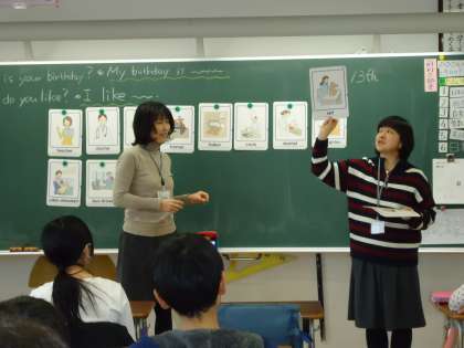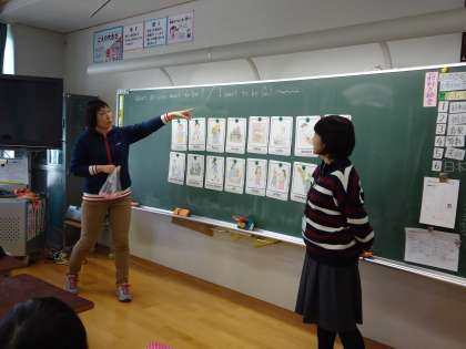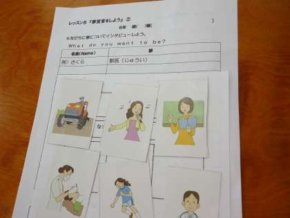 6年生の外国語活動では、様々な職業のピクチャーカードを使ってビンゴゲームをしていました。