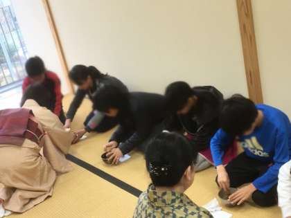 本日、5年生が茶道体験を行いました。お茶のたて方から教えていただき、真剣にお茶をたてる姿が印象的でした。自分でたてたお茶とお菓子をいただき、体験を通して、楽しみながら学習することができました。運営に携わってくださった方々、ありがとうございました。
