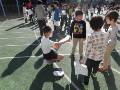 本日、児童集会で「6年生、サイン集め」を行いました。今期最後の集会委員会の仕事を5年生がしっかりと運営しました。1〜5年生はたくさんサインをもらい、6年生と最後の交流をしました。集会委員会のみなさん1年間お疲れさまでした。