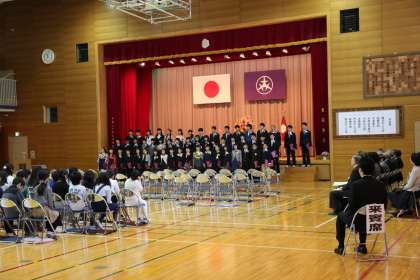 卒業生は、門出の言葉で6年間の思い出を振り返り、中学校に向けての決意や今までお世話になった感謝の気持ちを込めて呼びかけをしました。