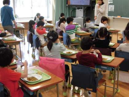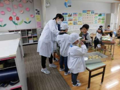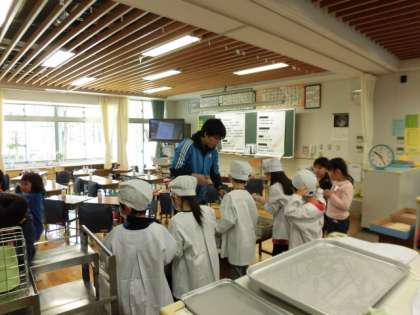 栄養士の先生や担任の先生から配ぜんの仕方を教えてもらいました。