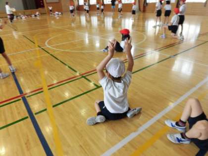 体育館では、2年1組と3組が合同で体育をしていました。