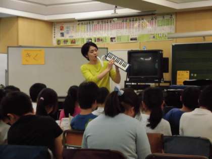 3年生の音楽の授業では、鍵盤ハーモニカの「指またぎ」と「指くぐり」を学習していました。これをマスターすれば、いろんな曲が演奏できます。3年生は、先生の指づかいを真剣に見ていました。