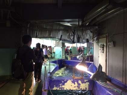 水族館の裏側、バックヤードを見学させてもらいました。水温、水質、明るさなど、細かい管理をしているを教えていただきました。生えかわったサメの歯も見せていただきました。貴重な経験でした。
