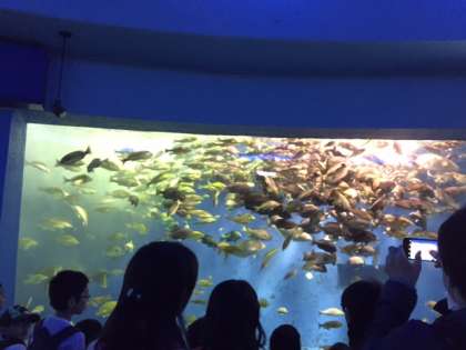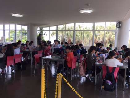 魚のショーや魚の餌付けを見て、お弁当です。みんな仲良く楽しんでます。