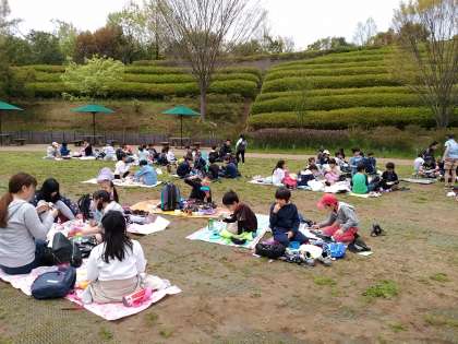 ころころ広場でお弁当。ちょっと雨が降ってきたかな、と思ったら晴れ間が見えてきました。(副校長)
