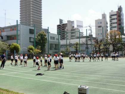 中休みに、クラスごとに、長縄8の字跳びに挑戦します。