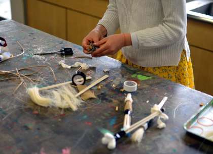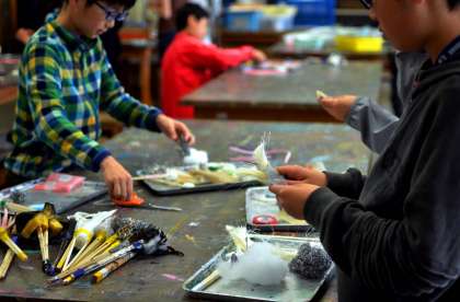 6年生、「墨のうた」の授業。墨を使った題材の第1回目は、筆づくりを行いました。普段使っている絵の具セットの筆や毛筆用の筆では、どのような線が描けるか容易に想像できてしまいます。筆に対する常識から一度離れ、自分で想像しながら筆をつくること、それがこの授業の一番の目的です。世界に一つだけのオリジナルの筆で、墨の表現に挑戦します。(図工専科)