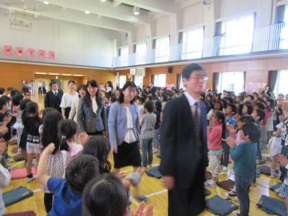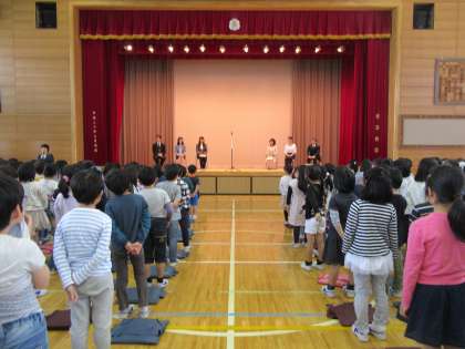 本日は離任式が開かれ、駒沢小学校を離れた先生がお見えになりました。