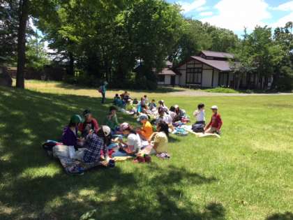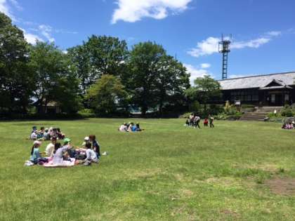 歴史民俗資料館の前の広場でお弁当の時間です。