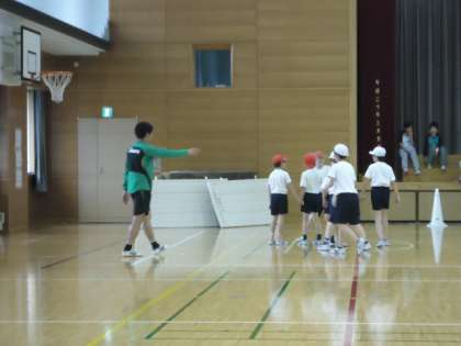 相手のことを考えてボールをキャッチするゲームや仲間で協力してゴールをめざすミニゲームなどを行いました。