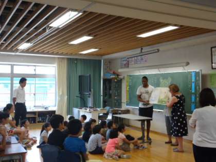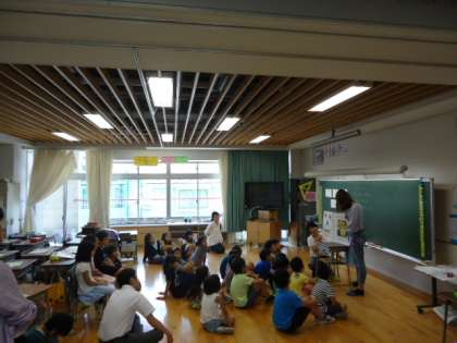 子供たちは絵本を見ながら、どんな意味なのか一生懸命に聞き取ろうとしていました。(副校長)