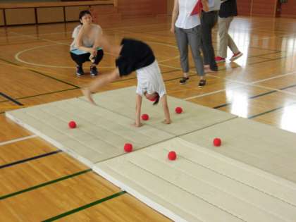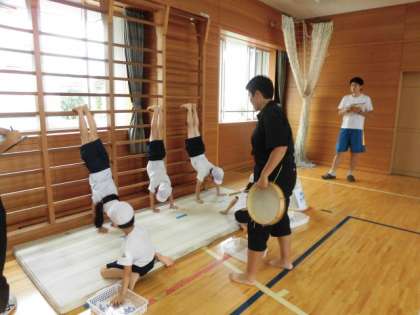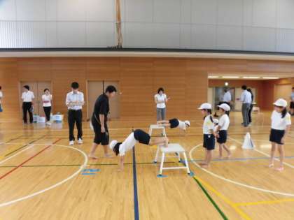 腕で自分の体を支える力や、頭が下になる逆さの感覚など、この時期に身につけておきたい力を、子供たちは楽しみながら身につけていました。