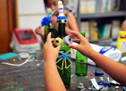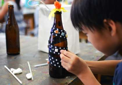 次回は、きっと子どもたちが自分で探してきた材料も加わることでしょう。ガラスびんがどんな楽しい人に変身するか、今からとても楽しみです。(図工専科)