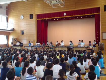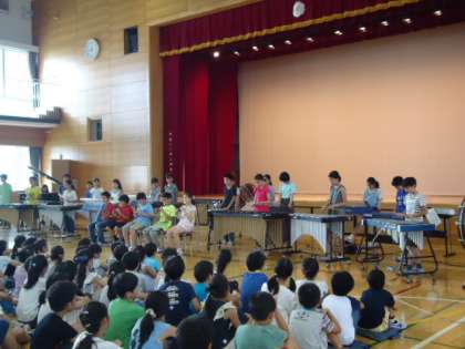 まず初めに、6年生がクラスごとに合奏し、1学期の学習の成果を発表しました。