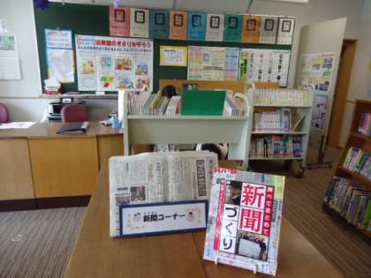 学校図書館には、新聞も置いています。自由研究のヒントを探しに来てはいかがでしょうか。(副校長)